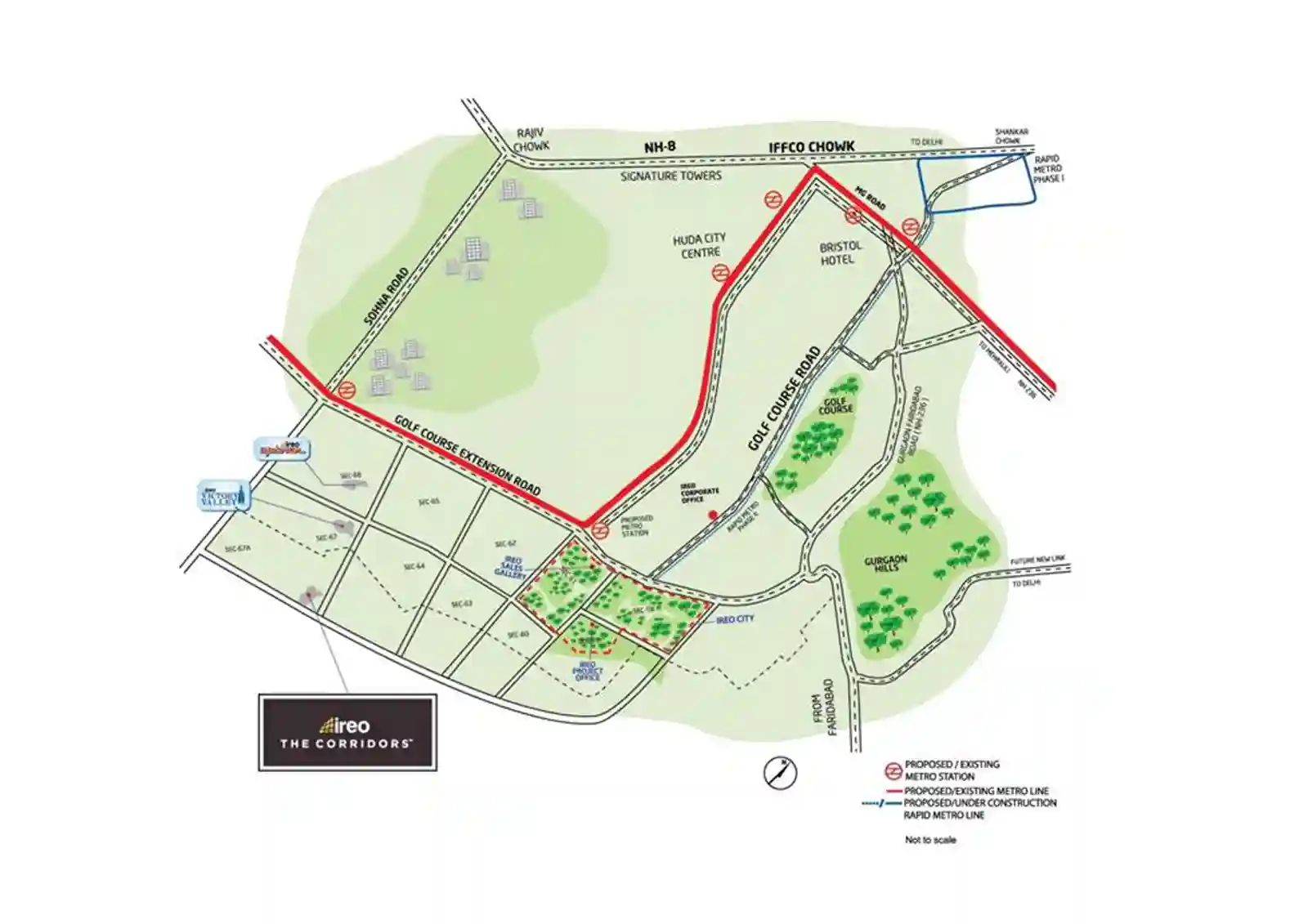 The Corridors Gurgaon IREO has an unmatched location with an access road of 90 meters and it links directly to NH-08. Conexity will be enhanced with the extension of Delhi Metro on Southern Peripheral Road in the coming time. It has schools, hospitals, malls, and cinema halls within 500 meters of distance thus life is very convenient there.